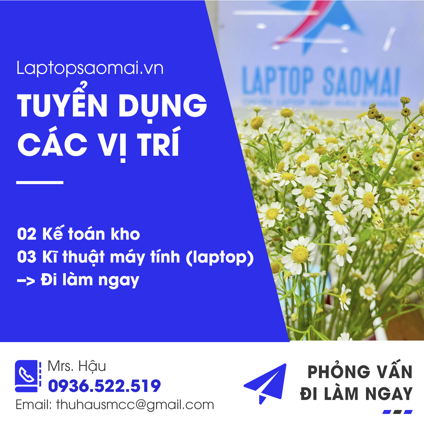 TUYỂN DỤNG CÁC VỊ TRÍ ĐI LÀM NGAY